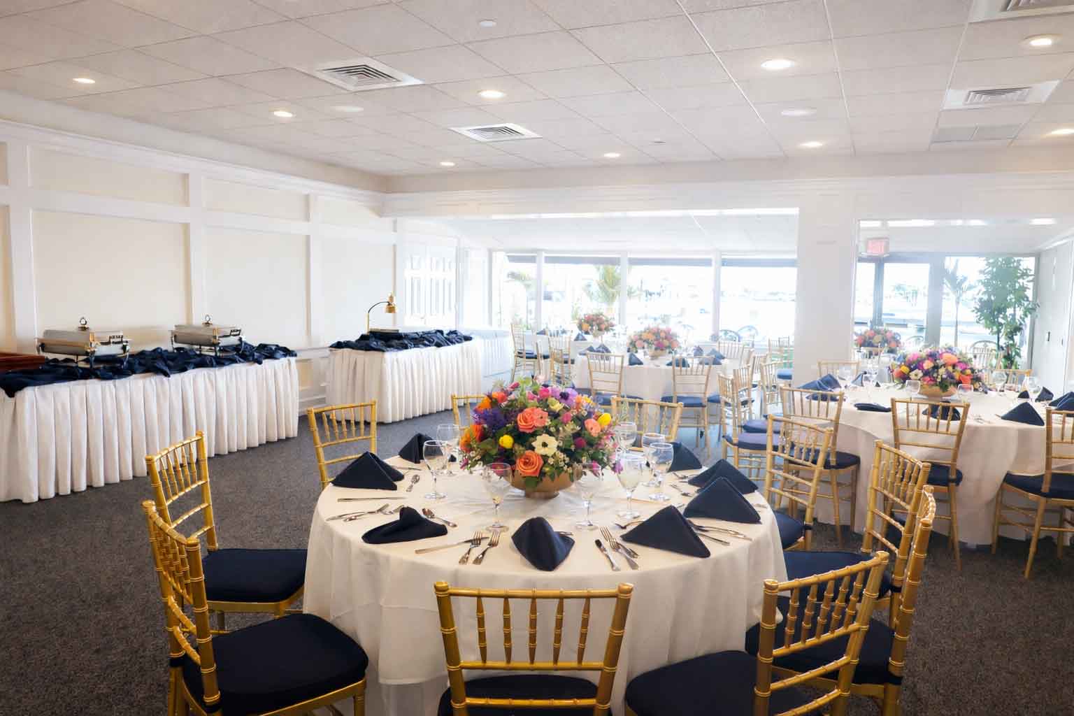 The Harborview Room has sparkling views of the Bay Shore Marina and the Great South Bay. This space is perfect for celebrating birthdays, anniversaries, showers, communions, graduations, retirements, holiday parties and smaller weddings. This room features a full dance floor, fireplace and access to the back deck where your guests can enjoy the magnificent view.